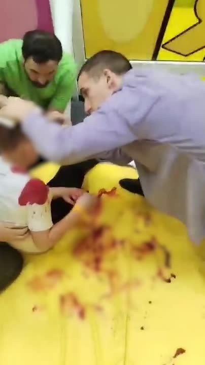 Пугающие кадры распространились в соцсетях. Ребенку, испачкавшемуся в собственной крови, оказывают первую помощь. Судя по видео, ребенок ехал на тарзанке, но упал из-за раскрутившейся гайки, которая ранила его в голову.