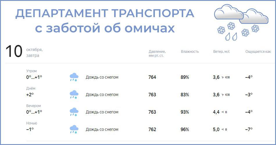 10 октября в Омске и по области ожидается похолодание и мокрый снег, местами – гололедица. Температура продолжит падать, поэтому будьте особенно внимательны на дорогах.