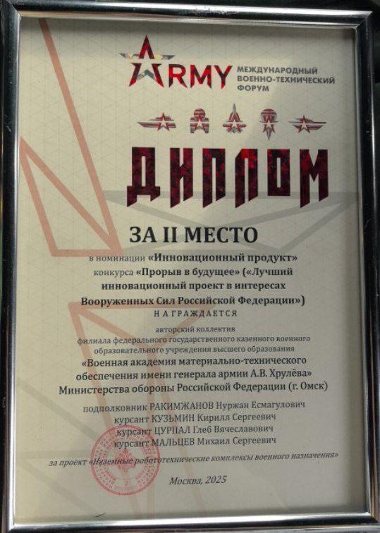 Омский автобронетанковый инженерный институт — призёр конкурса «Прорыв в будущее» («Лучший инновационный проект в интересах Вооруженных Сил Российской Федерации»)!