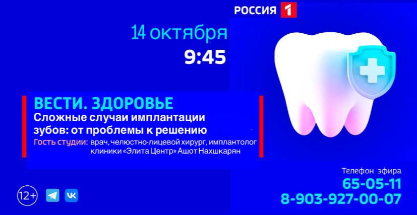 Смотрите программу «Вести Здоровье» 14 октября в 9:45 на телеканале «Россия 1» или присоединяйтесь к трансляции в наших социальных сетях.