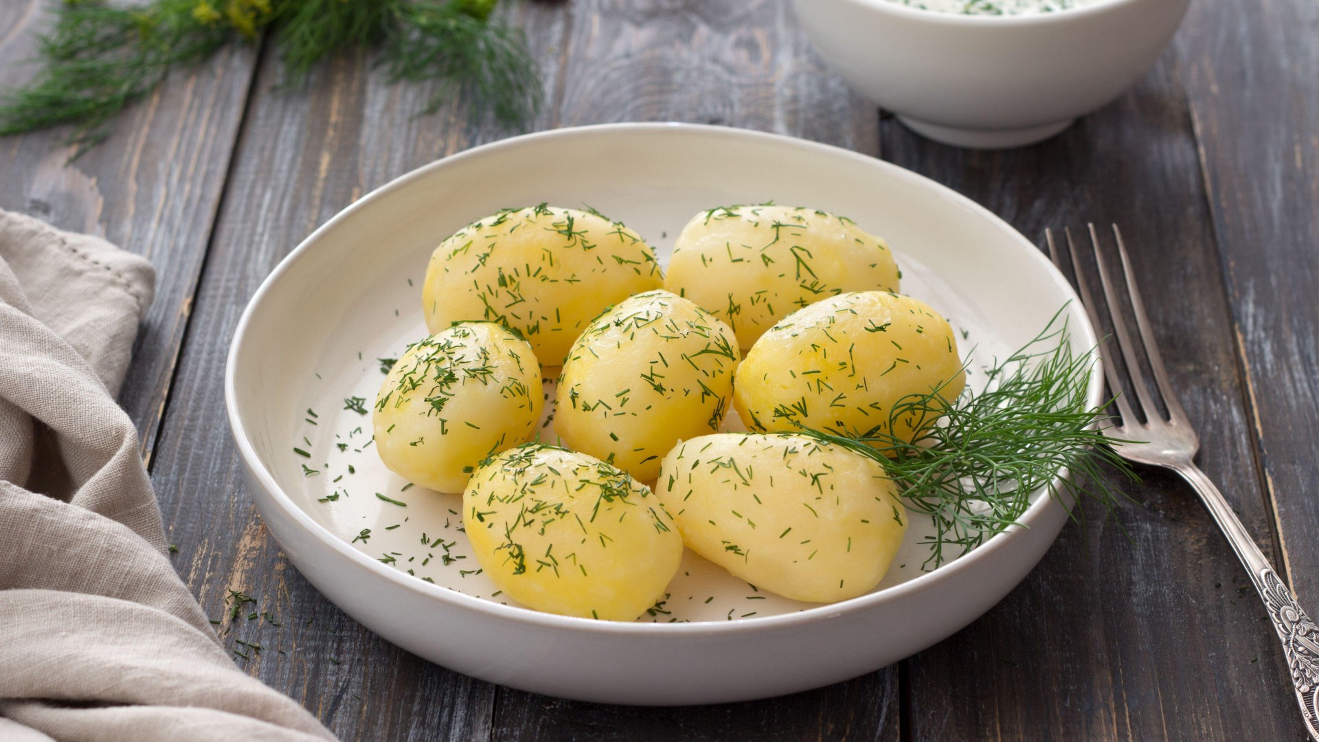 Рецепт незаслуженно позабыт, а ведь такое блюдо готовится очень быстро и не требует дорогостоящих ингредиентов. Возьмите очищенные клубни и отварите их в подсоленной воде. По желанию закиньте в воду лавровый лист и один зубчик чеснока.