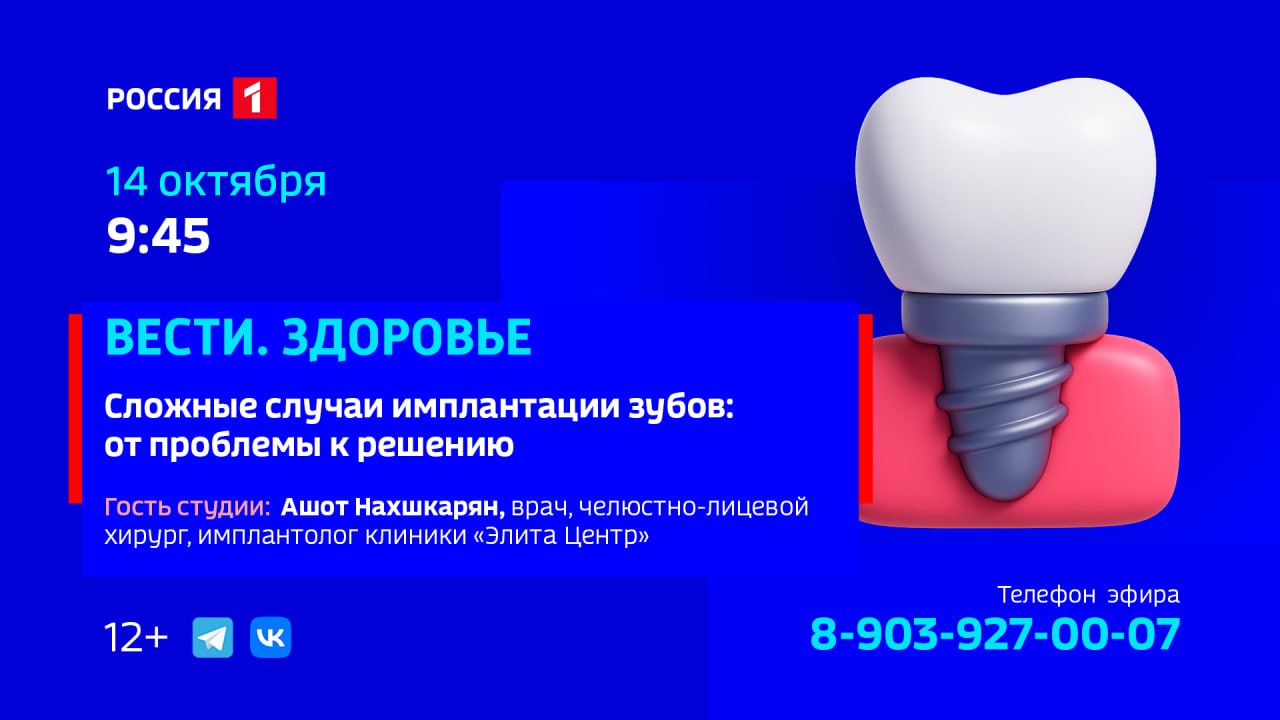 Смотрите программу «Вести Здоровье» 14 октября в 9:45 на телеканале «Россия 1» или присоединяйтесь к трансляции в наших социальных сетях.