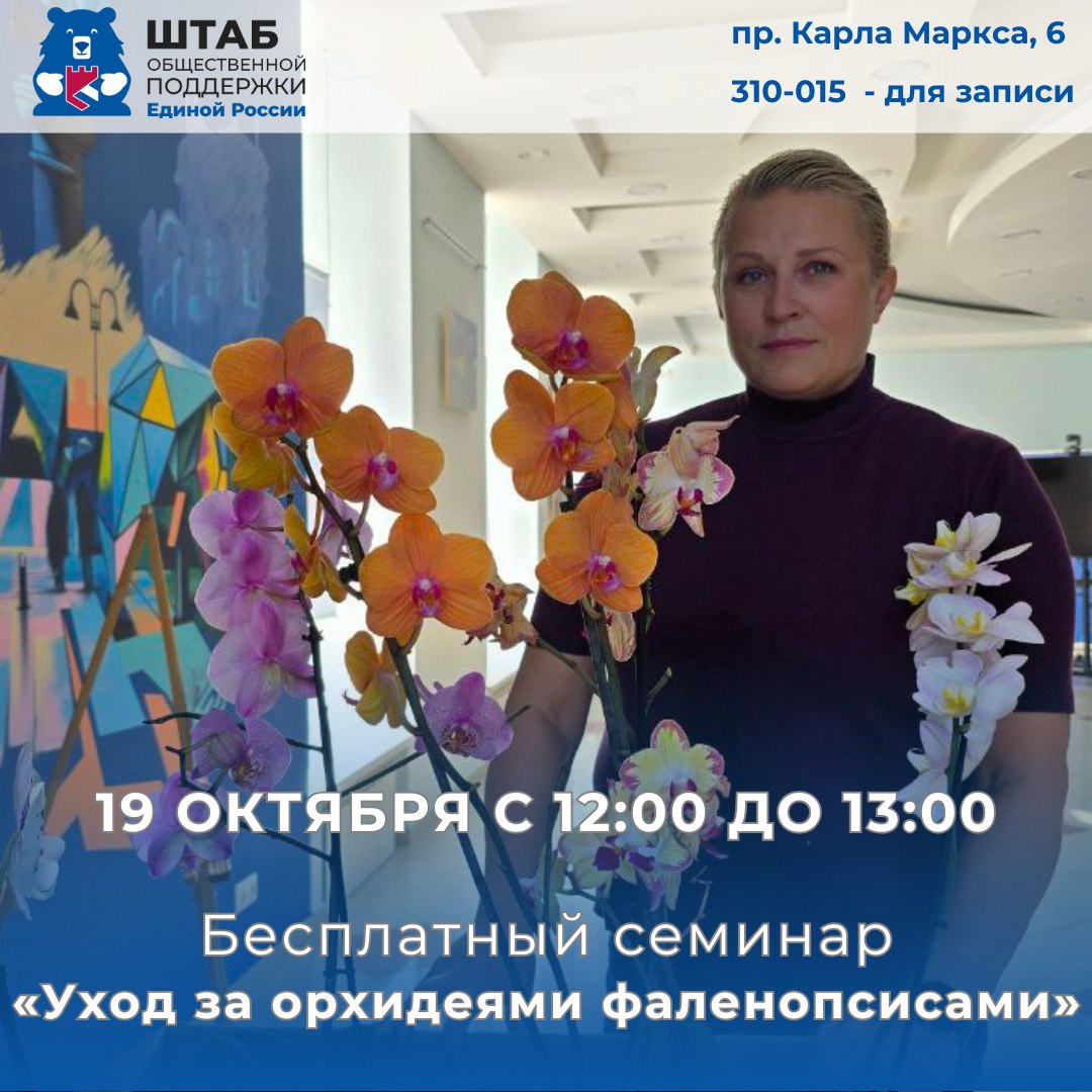 Ждем вас в Штабе общественной поддержки «Единой России» 19 октября с 12:00 до 13:00 по адресу: проспект Карла Маркса, 6.