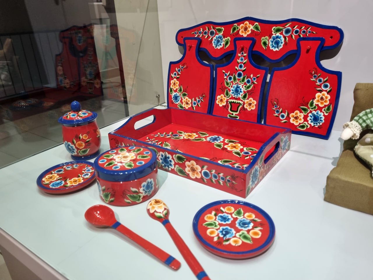 Дипломники Омского колледжа культуры и искусств и Омского музыкально-педагогического колледжа представили коллекции, пронизанные духом народных традиций. Посетители смогут полюбоваться авторскими интерьерными куклами, оригинальными сувенирными наборами из дерева, расписными шкатулками и кухонными принадлежностями в узнаваемом стиле урало-сибирской росписи.