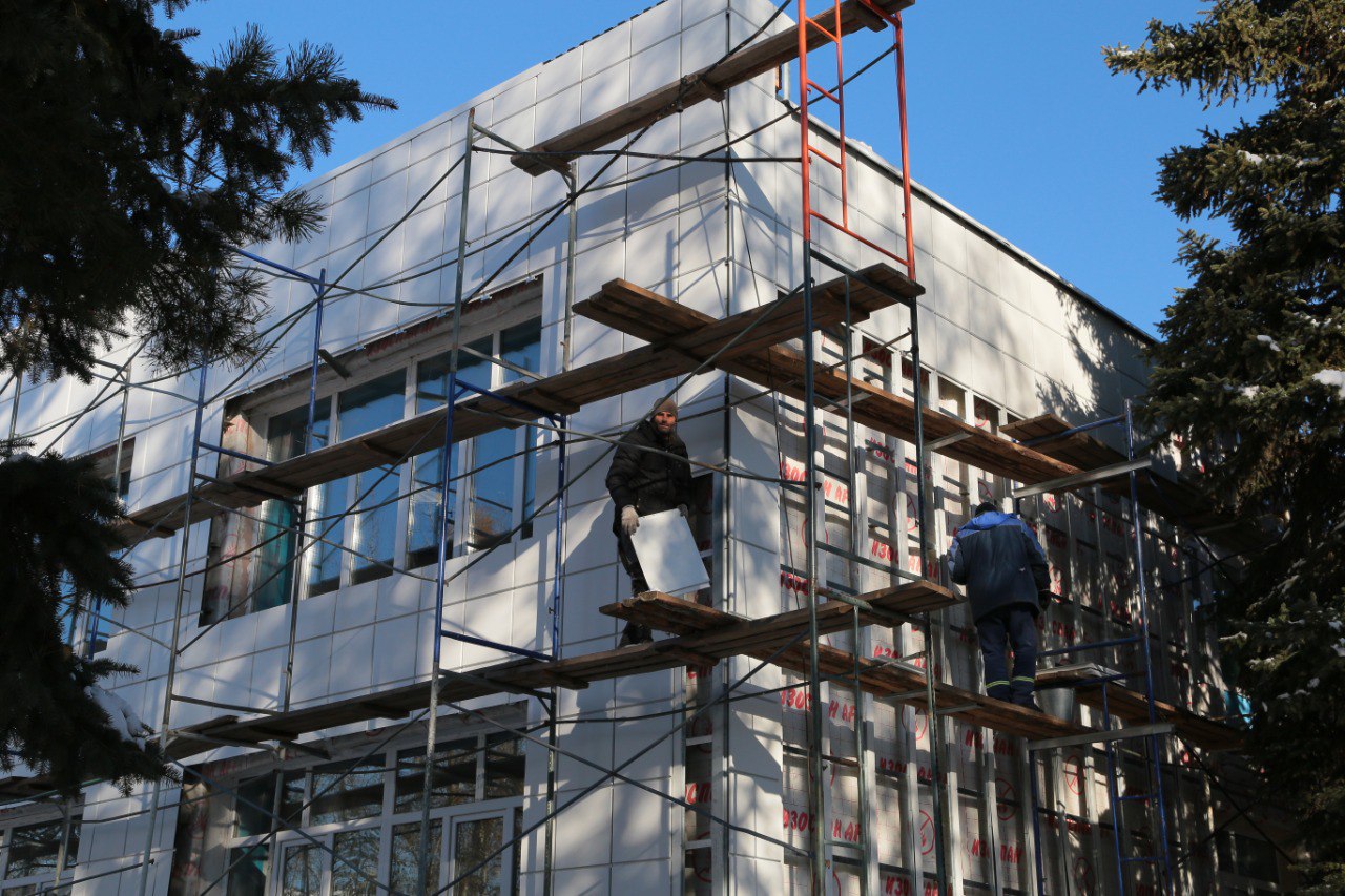 Все стены в здании обработаны противогрибковыми составами, предназначенными для детских учреждений. Также заменена кровля. На 70% смонтирован утепленный вентилируемый фасад.
