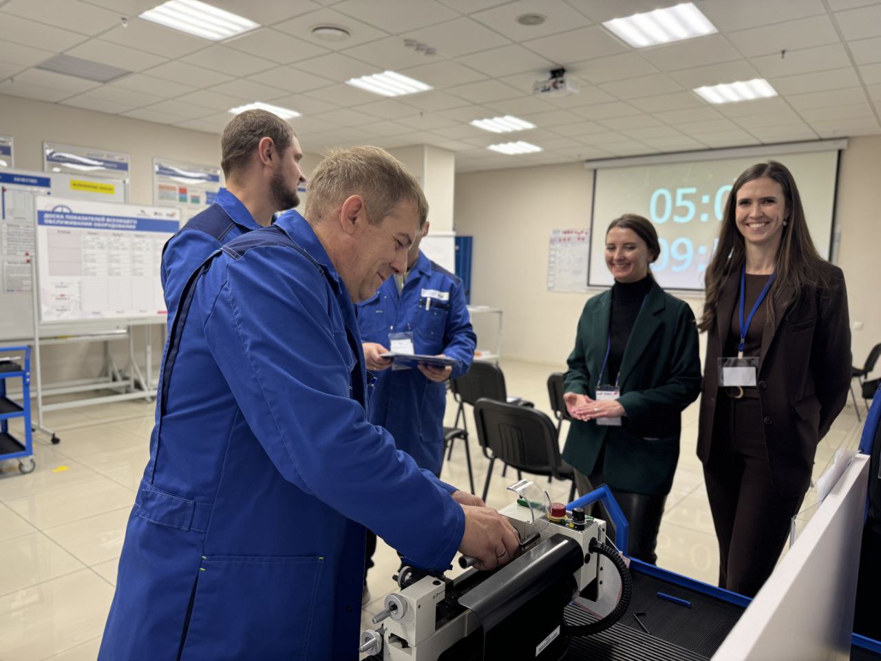 На специальной площадке в «Конгресс-холле» расставили промышленные станки: токарный, вертикально-сверлильный и заточный. Они стали тренажерами, на которых участники осваивают подходы, применимые в любой отрасли. Тренинг проводят сертифицированные тренеры Регионального центра компетенций. На «Фабрике» учат не просто ремонтировать поломки, а выстраивать систему предотвращения. Участники не просто слушают о формулах расчета эффективности — они видят, как эти цифры меняются благодаря их решениям.