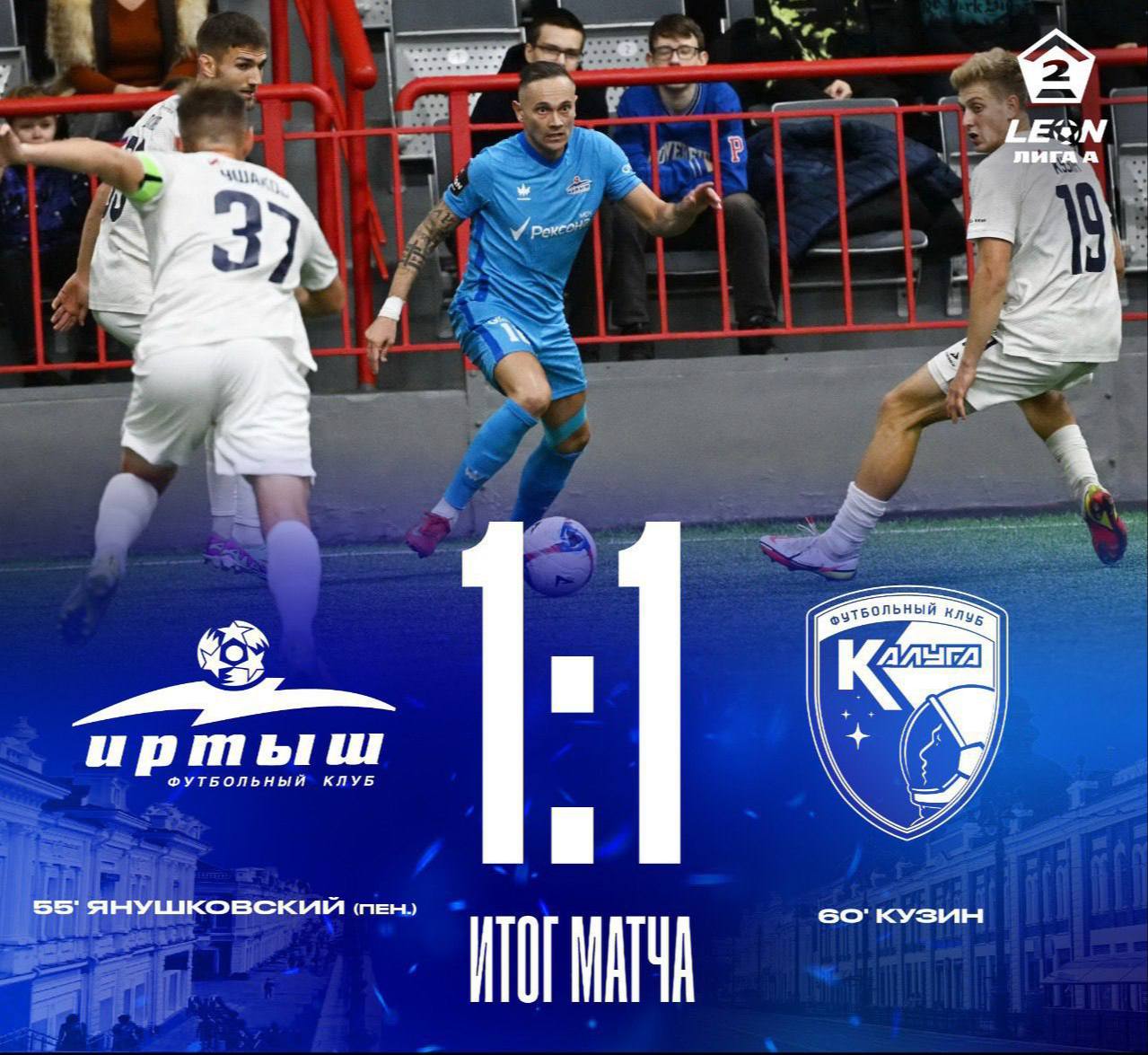 Решающий матч состоялся вчера, 18 октября. Омский «Иртыш» сыграл вничью с «Калугой» со счётом 1:1 и по итогам сезона обеспечил себе выход в «золотой» дивизион второй Лиги — А.