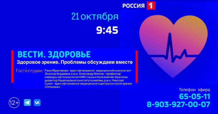 Смотрите программу «Вести. Здоровье» 21 октября в 9:45 на телеканале «Россия 1» или присоединяйтесь к трансляции в наших социальных сетях.
