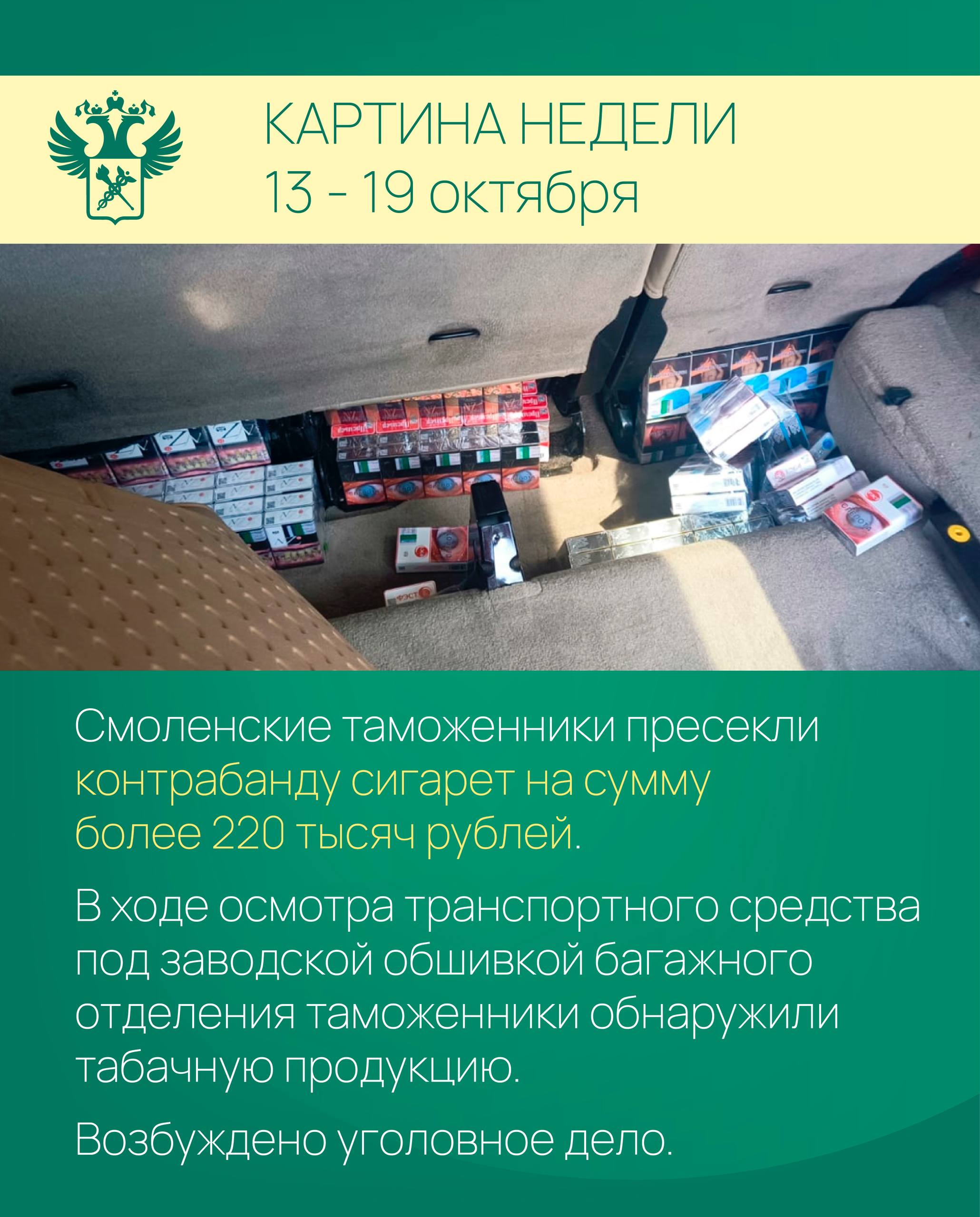 Смоленские таможенники пресекли контрабанду сигарет на сумму более 220 тысяч рублей