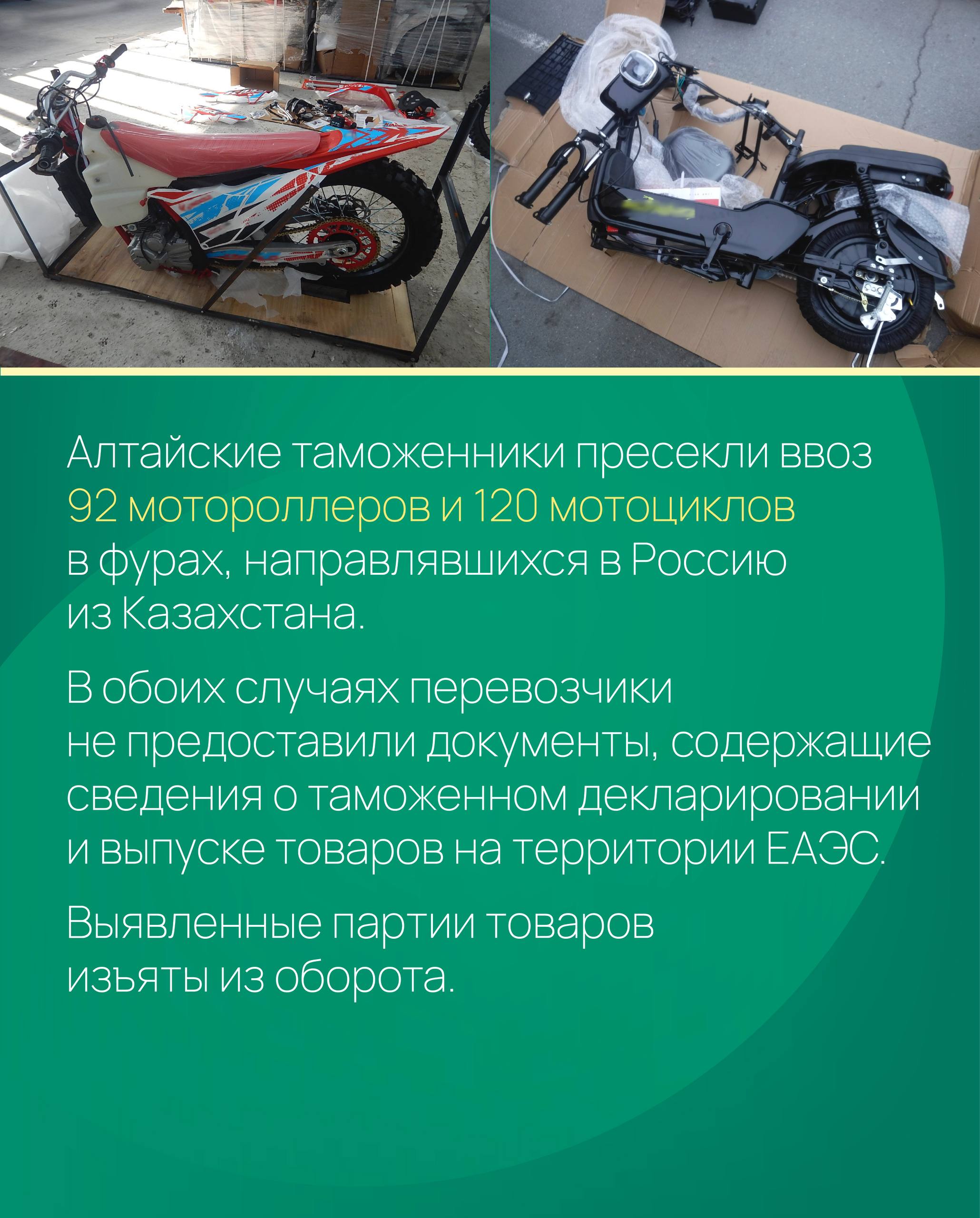 Две партии нелегальной мототехники не пустили в Россию алтайские таможенники