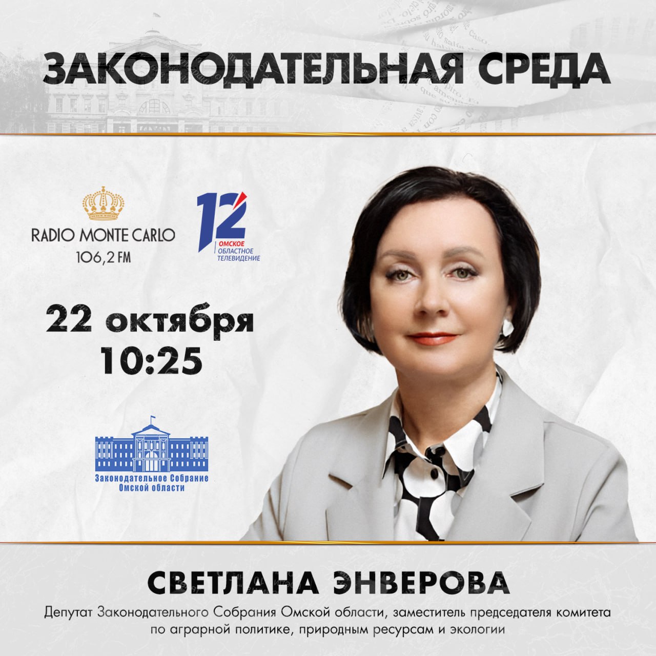 Светлана Энверова станет гостем нового выпуска программы «Законодательная среда» (12+)
