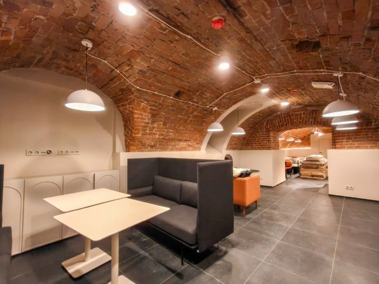 Особое внимание при реставрации уделили сохранению аутентичных деталей. В цокольном этаже восстановили старинную кирпичную кладку и своды. Для реставрации кирпича даже привозили материалы из Москвы.