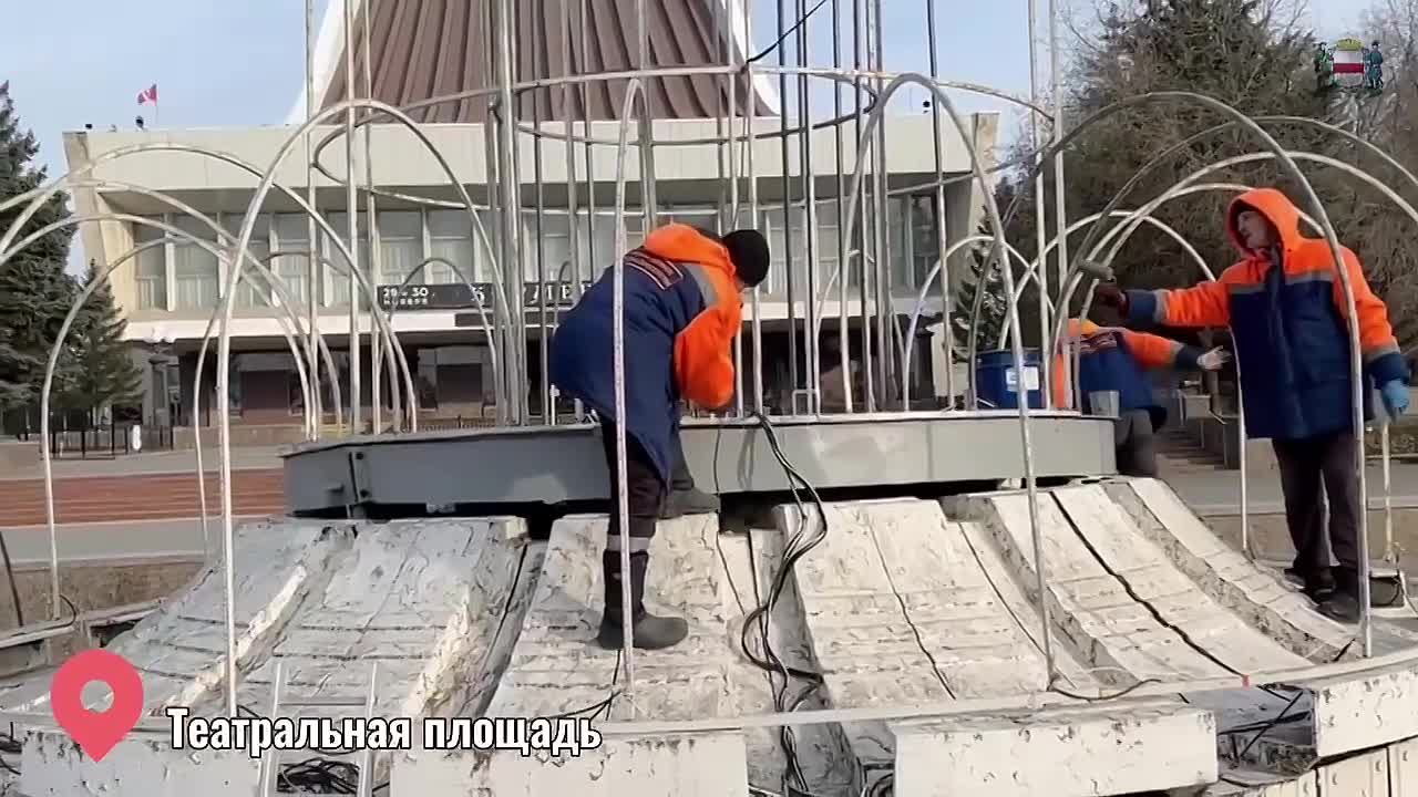 Особое внимание уделяется площади у Музыкального театра, где устанавливают светодиодный фонтан — одно из главных украшений новогоднего Омска. Его сияющие дуги и «световые струи» создадут эффект настоящего водного фонтана.