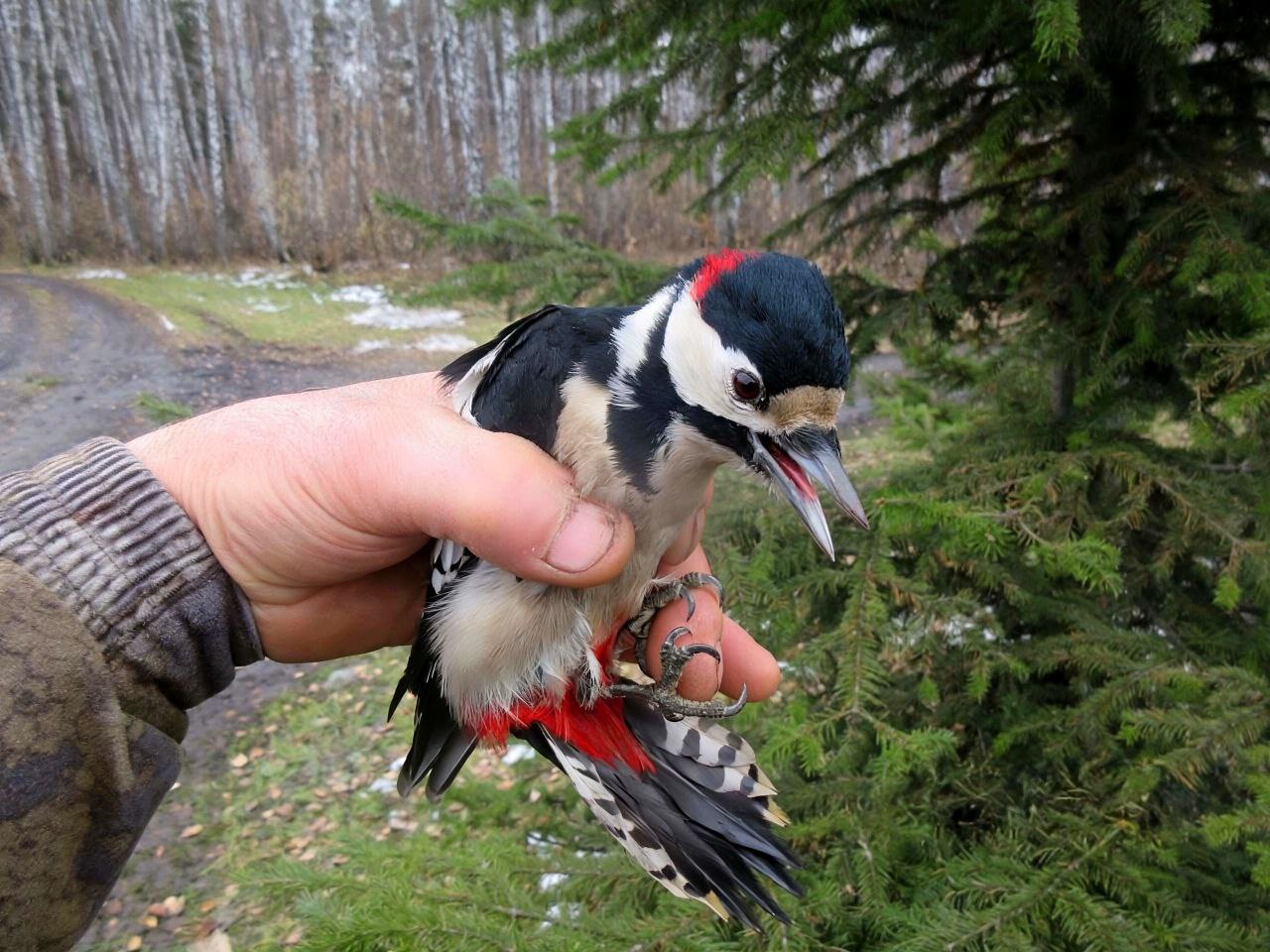 В Саргатском районе охотинспектор спас дятла, попавшего в беду!