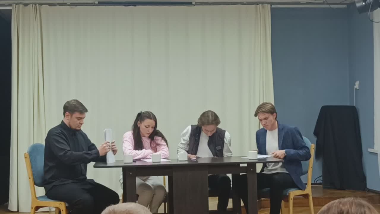 В Камерном драматическом театре им. Решетникова идёт читка пьесы «Апельсины для Мари». На читке присутствует и сам автор пьесы - драматург Сергей Ждан
