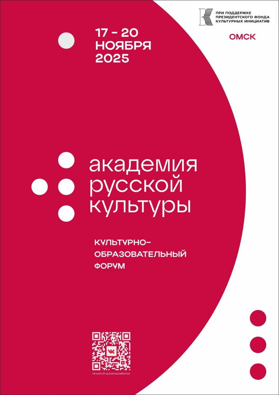 С 17 по 20 ноября в Омске пройдет культурнообразовательный форум «Академия русской культуры». Форум проводится в Омске с 2018 года. В этом году вышел на всероссийский уровень, став основой масштабного проекта «Сибирская экспедиция «Над временем».