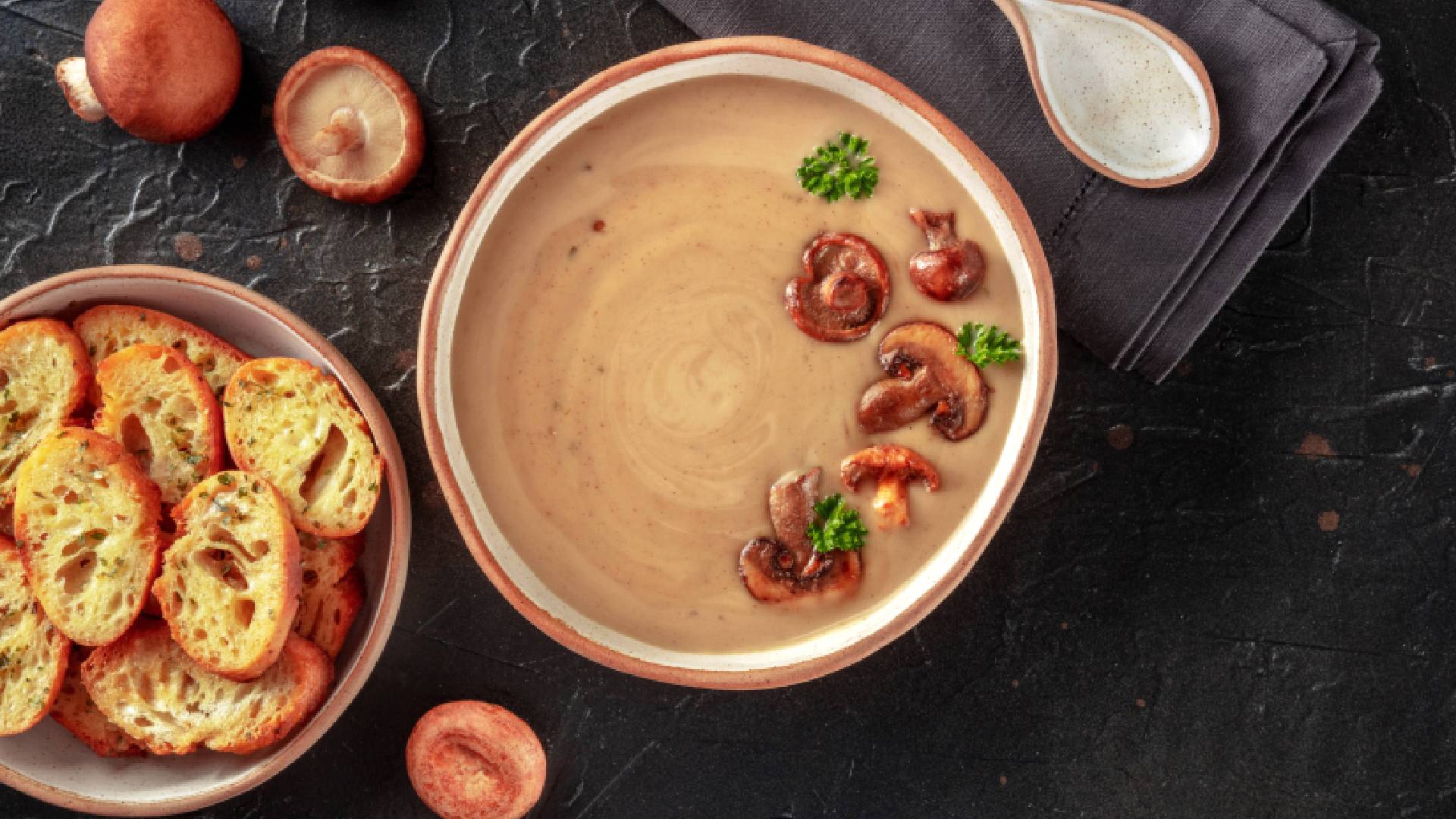 Залейте горячим бульоном или водой, накройте крышкой и варите 15 минут. Добавьте греческий йогурт, перемешайте и пюрируйте блендером. Приправьте солью и перцем. При подаче украсьте грибной крем-суп жареными шампиньонами и рубленой зеленью, советует «Лайфхакер».