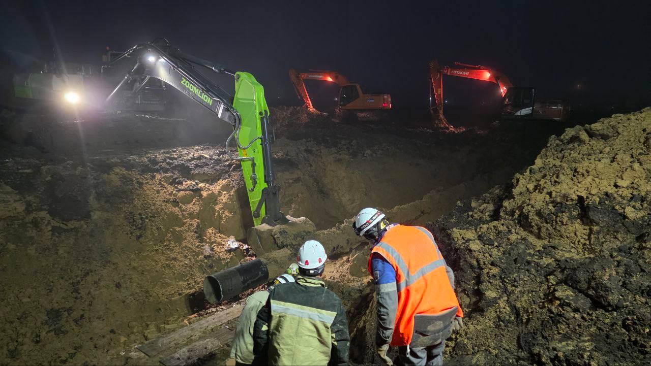 На месте происшествия задействовано около ста человек и более двадцати единиц спецтехники. Работы будут продолжаться до тех пор, пока последствия аварии не будут полностью устранены.
