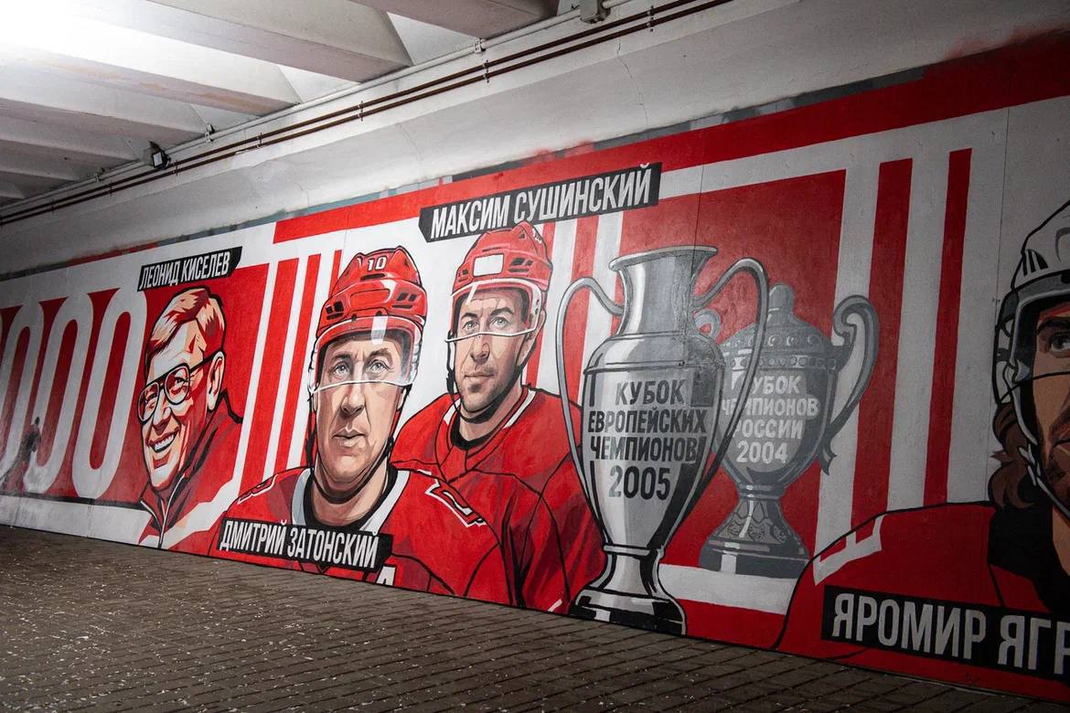 На стены нанесли яркое красно-бело-чёрное граффити, посвящённое нашему клубу