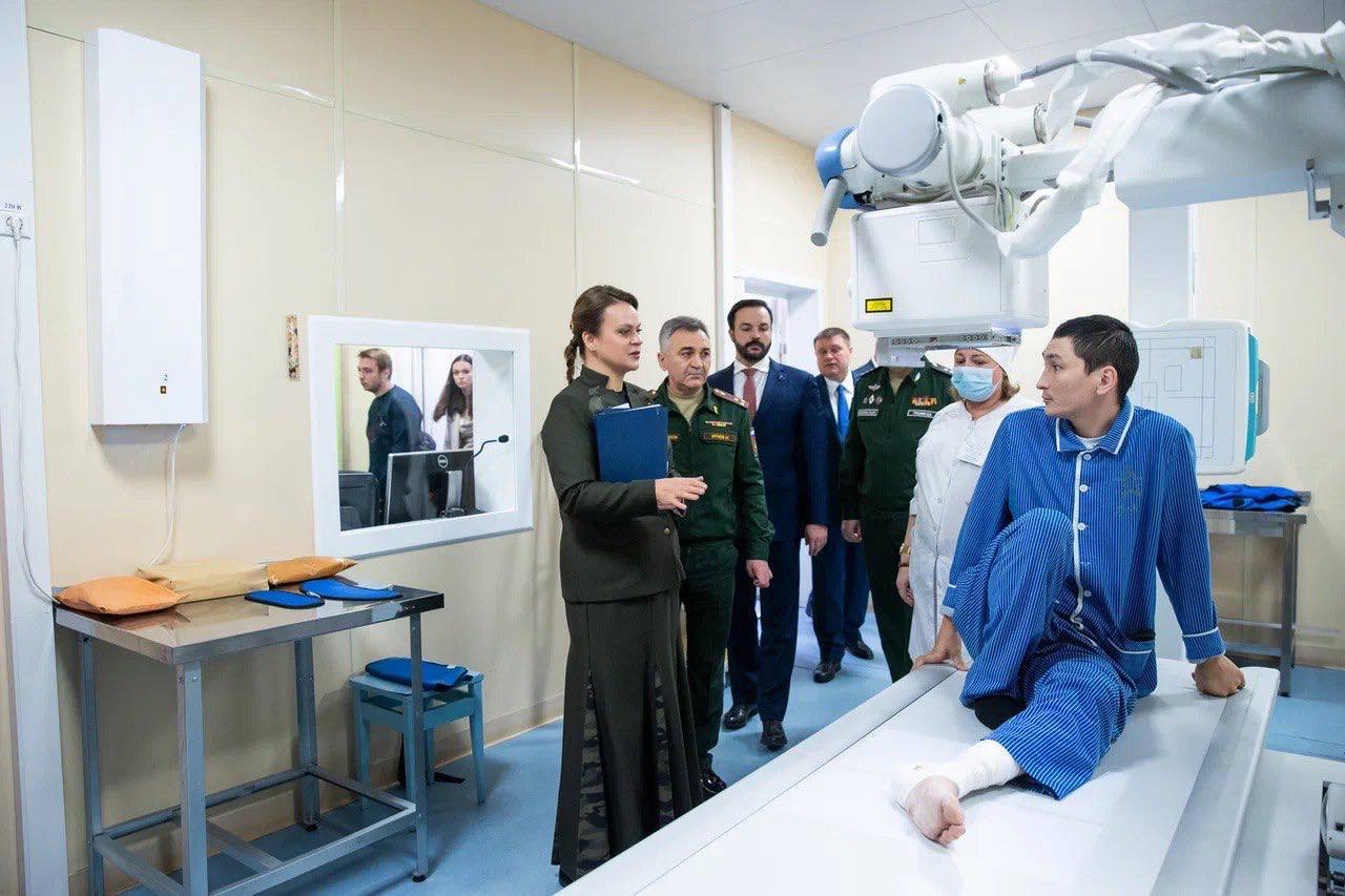 В военном госпитале заслушала доклад начальника филиала, ознакомилась с материально-технической базой. Сотрудники отметили, что при эвакуации раненых используются новые технологии, которые снижают риск получения дополнительных травм и уменьшают болевые ощущения.