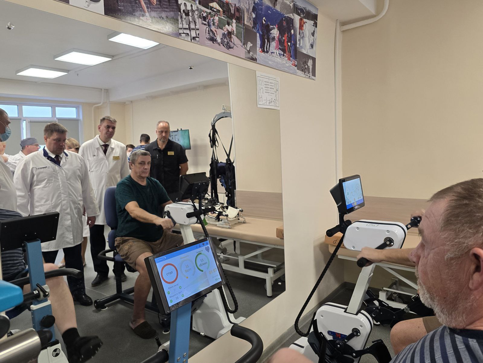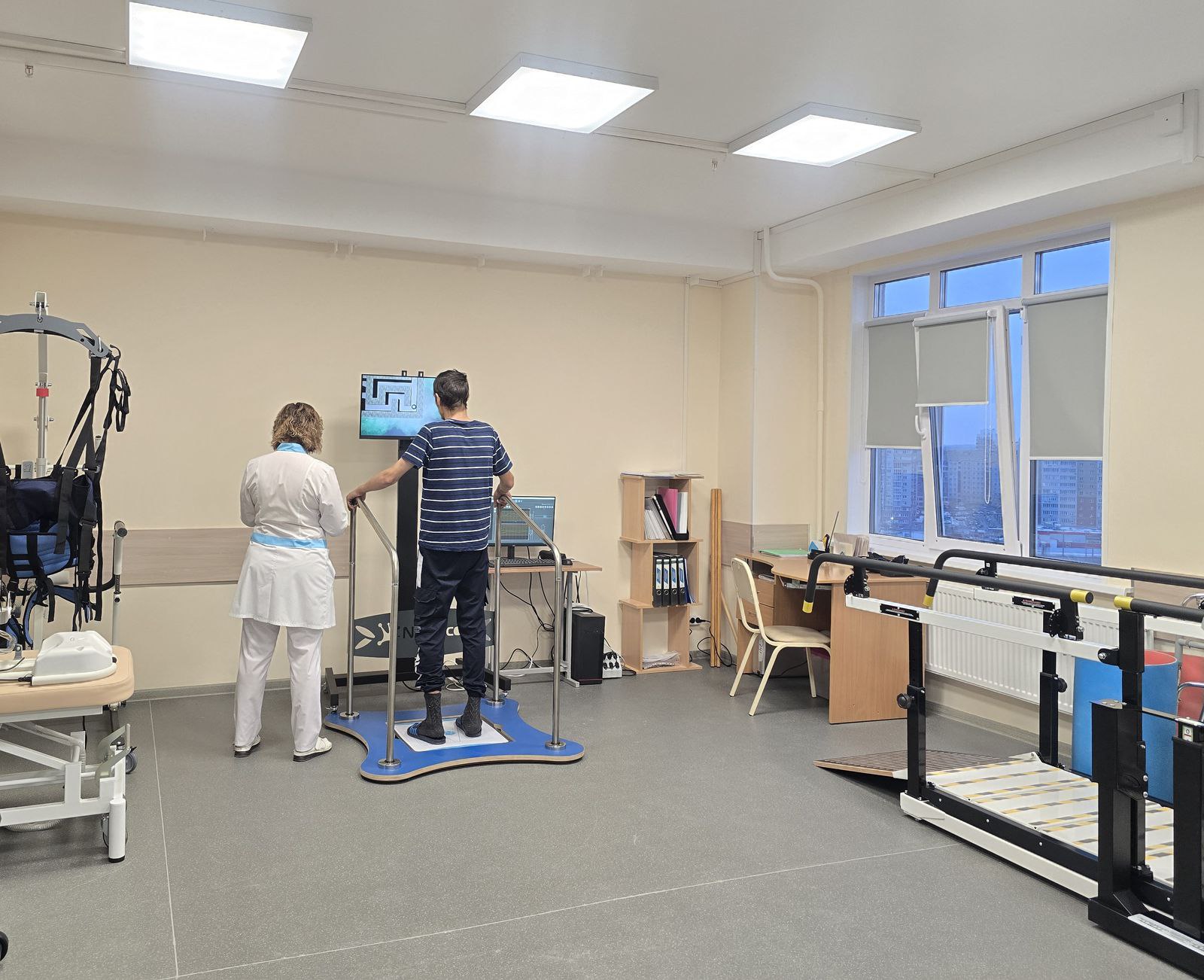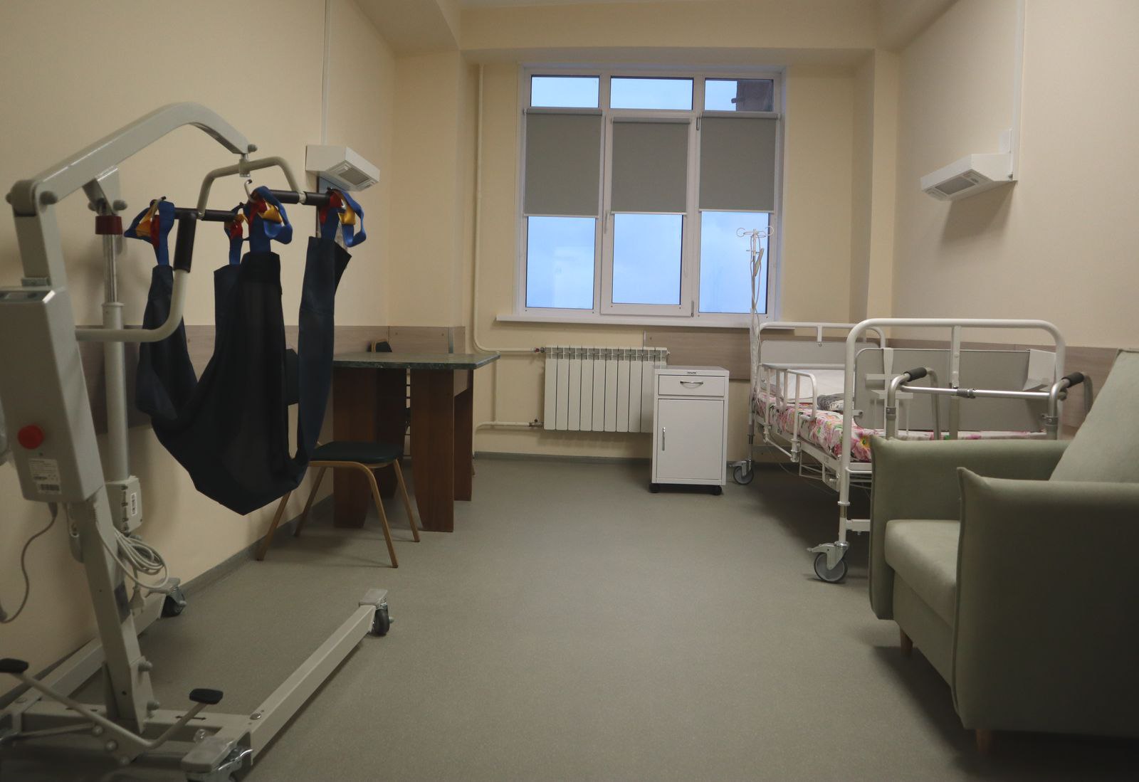 Закупили и новое медицинское оборудование и мебель: массажные кушетки и кровати с электроподъемниками, противопролежневые матрасы, современные аппараты для физиотерапии, велоэргометр, подъемники и специальные устройства перемещения пациентов. Для комплексной медицинской реабилитации используют тренажеры с биологической обратной связью для тренировки ходьбы и равновесия, комплекс для диагностики, лечения и реабилитации больных с двигательной патологией "Биокинект", аппараты двигательные для роботизированной механотерапии суставов рук и ног.