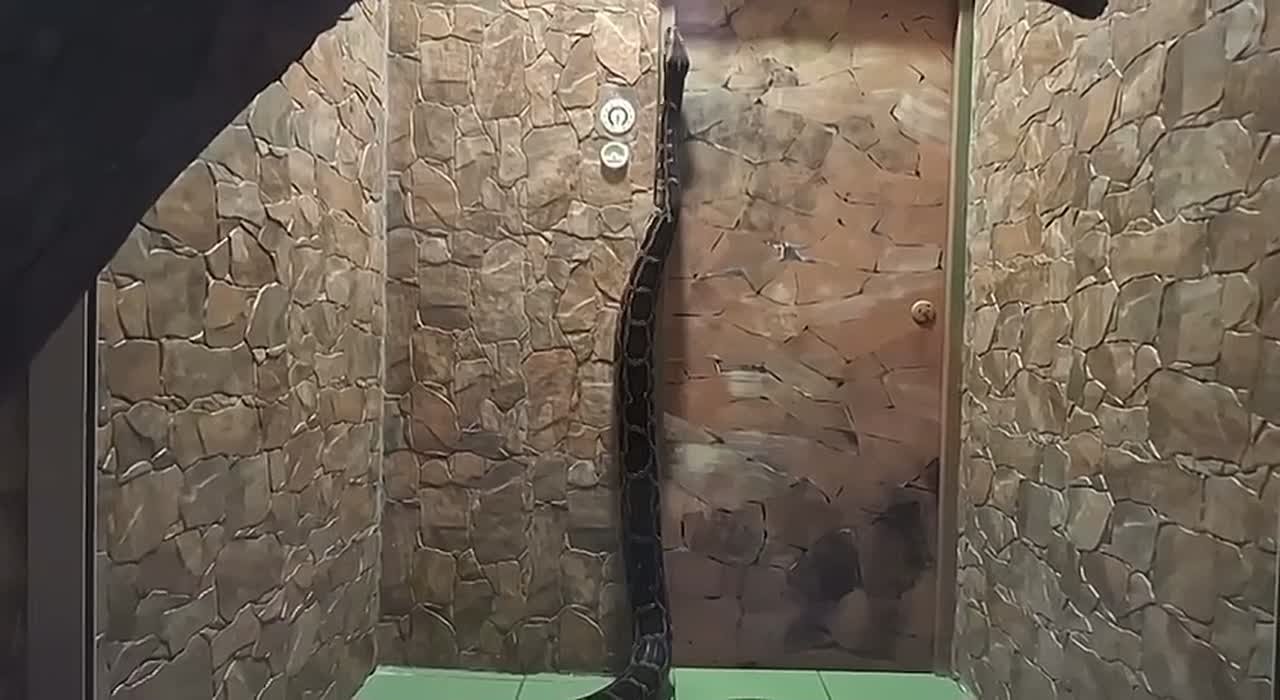 Тигровый питон из Омского зоопарка устроил настоящее шоу, залезая почти до потолка.