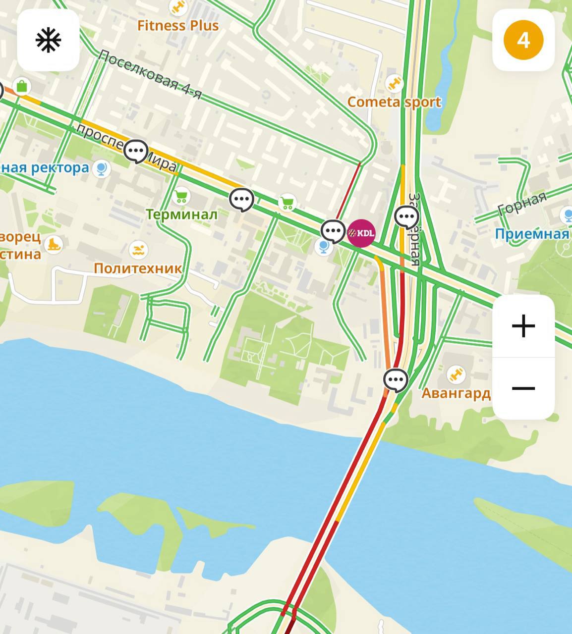 Дольше всего пришлось постоять на улице Конева, проспектах Мира и Карла Маркса, а также на мостах через городские реки.
