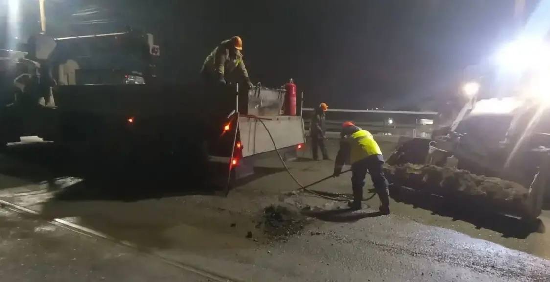 Прошлой ночью подрядчик снова провёл локальный ремонт проезжей части. Работы ведутся уже несколько месяцев и будут продолжаться с учётом погодных условий и в ходе запланированных ночных перекрытий для обслуживания объекта.