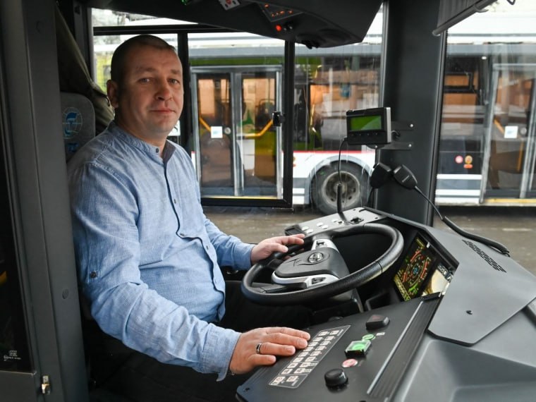 Управлять электробусами в Омске доверили водителю троллейбусов с 19-летним стажем Александру Серегину. Он ездила на «Сириусе», а теперь проводит испытания «Генерала». Признается, что электробусы удобнее в эксплуатации.