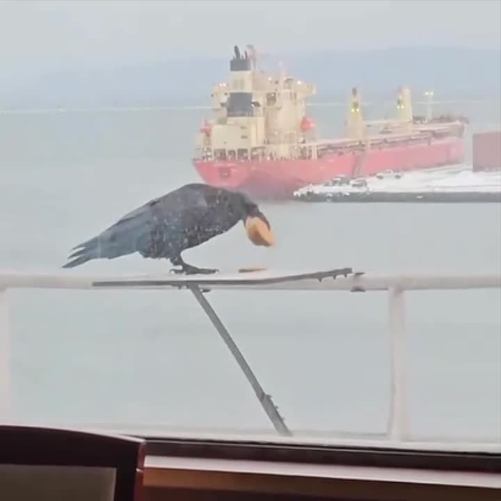 Во Владивостоке нашли самого жадного ворона – унес в клюве целых шесть крекеров