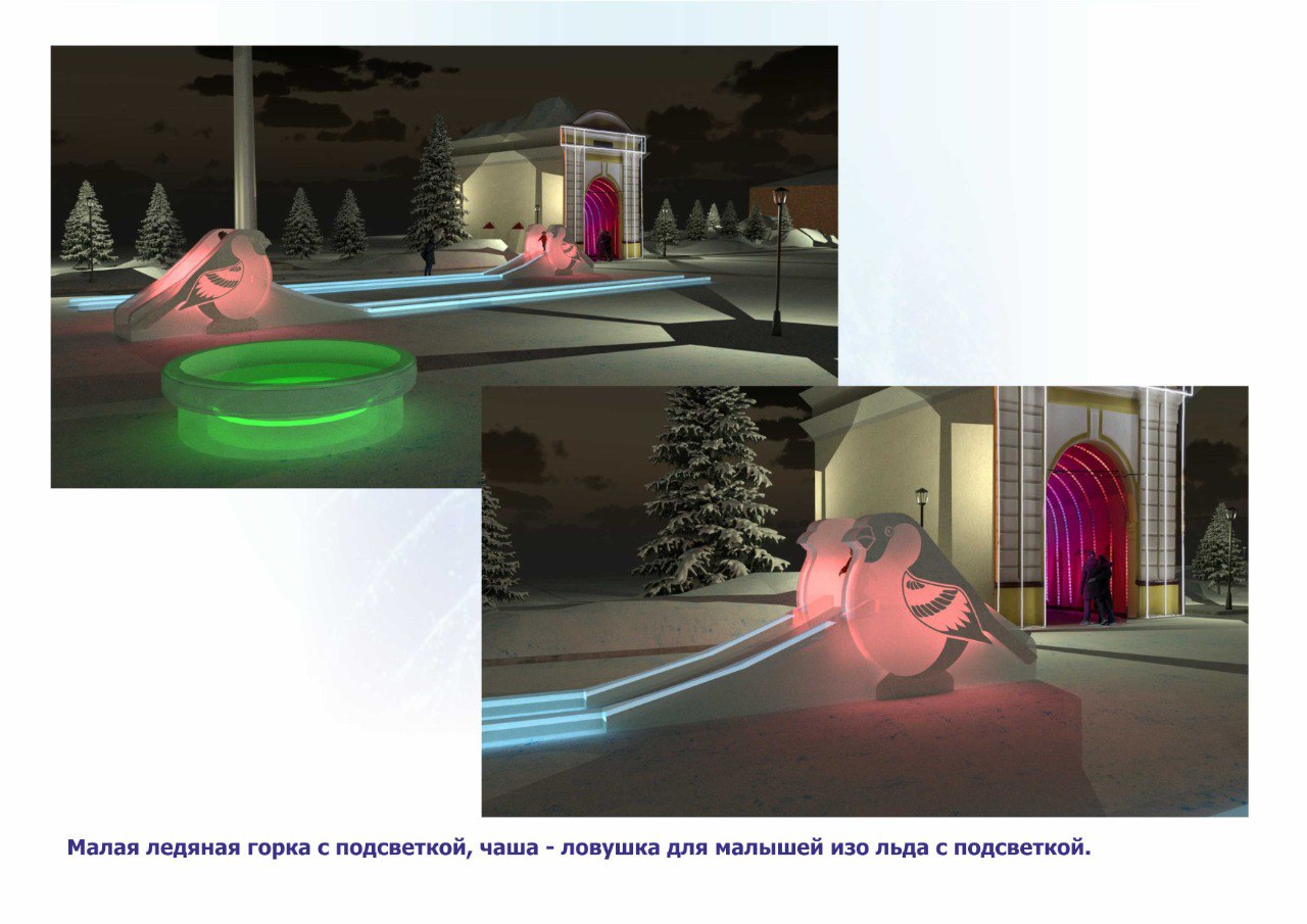 Ледяные снегири, которые «сядут» по краям маленьких горок