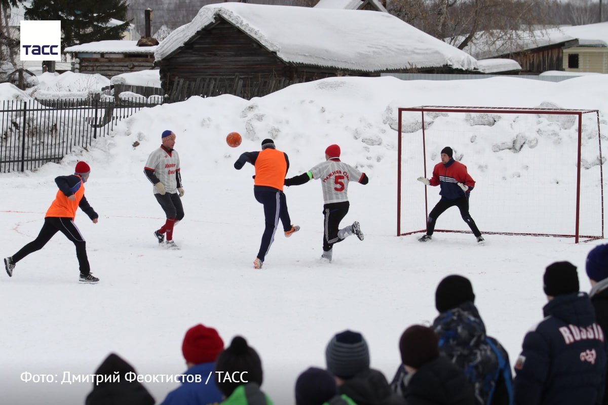На фото жители села Большие Уки играют в футбол.