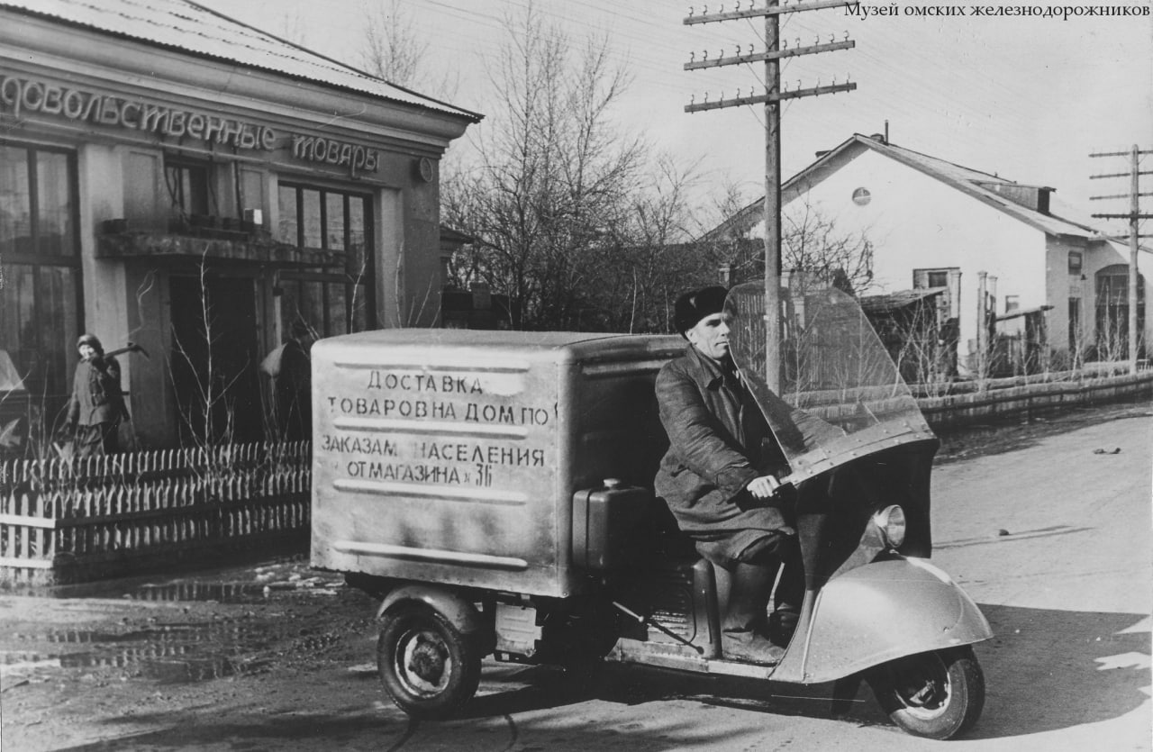 Шутка, конечно. Но на фото — грузовой мотороллер Отдела рабочего снабжения на улице Ишимской, который развозил товары на дом по заказам населения от магазина № 36.