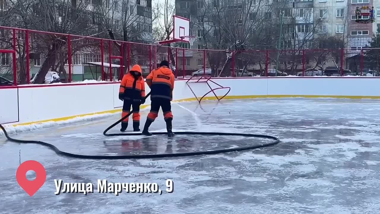 В Ленинском округе активно заливают дворовые хоккейные площадки