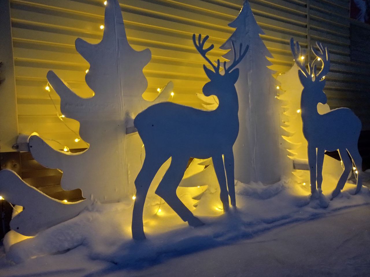 Комплексный центр социального обслуживания населения в Седельниково встречает своих посетителей яркими огнями, елками и сказочными оленями.
