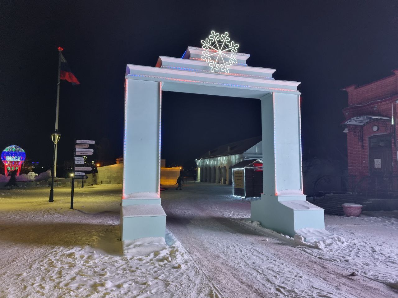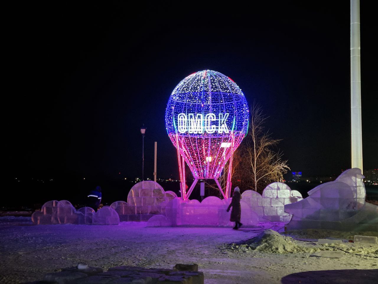 На территории Омской крепости нарядили главную городскую елку. Строительство ледового городка пока продолжается. Центральным элементом здесь станет горка, выполненная в виде трамплина Музыкального театра. Для ее строительства потребовалось 4160 ледовых блоков.