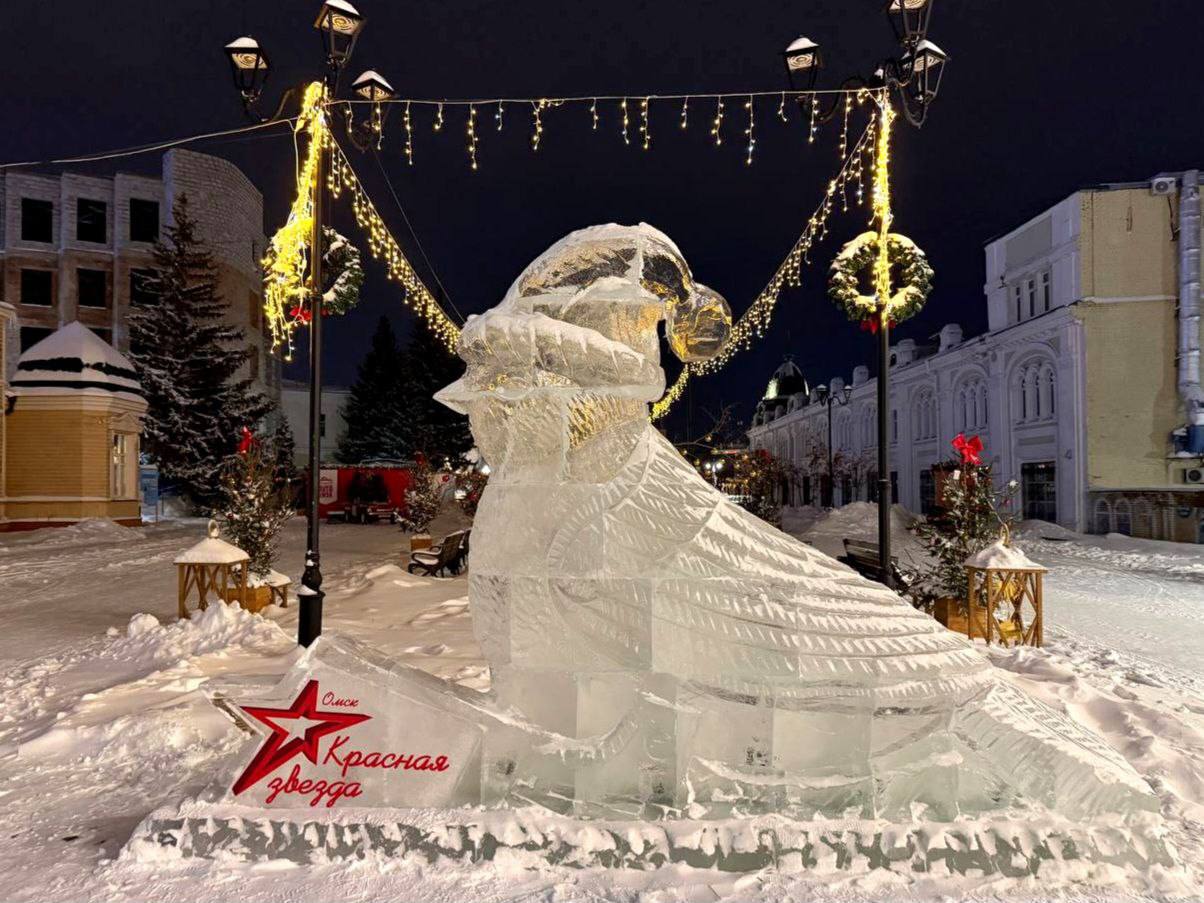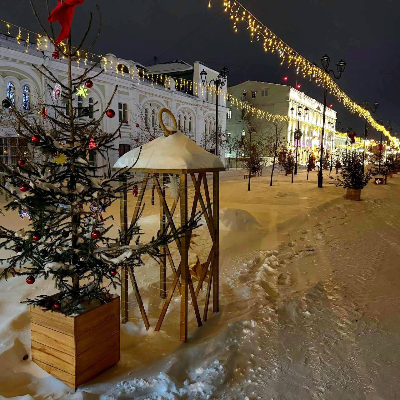 На улице Музейной уже установили живые ёлочки и фонарные столбы, смонтировали фотозоны и создали ледяные фигуры.