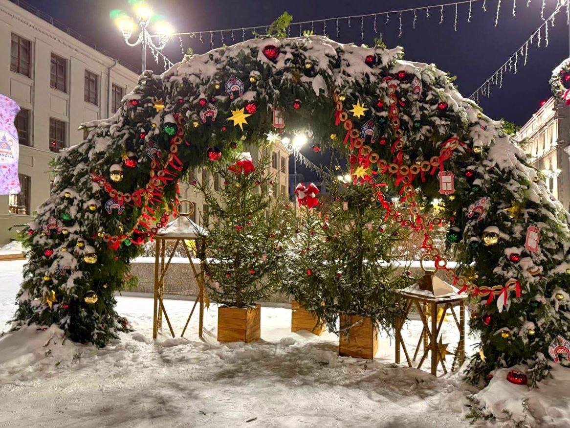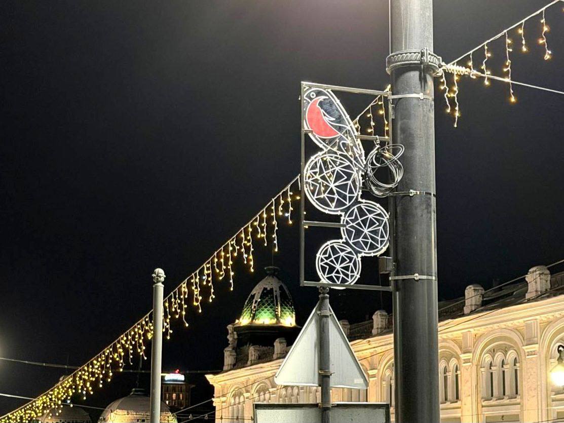 На Любинском проспекте начали появляться новые локации: торговые и промоточки, оформленные павильоны и тематические уголки для фотографий. Фонарные столбы украсили изображениями снегирей.