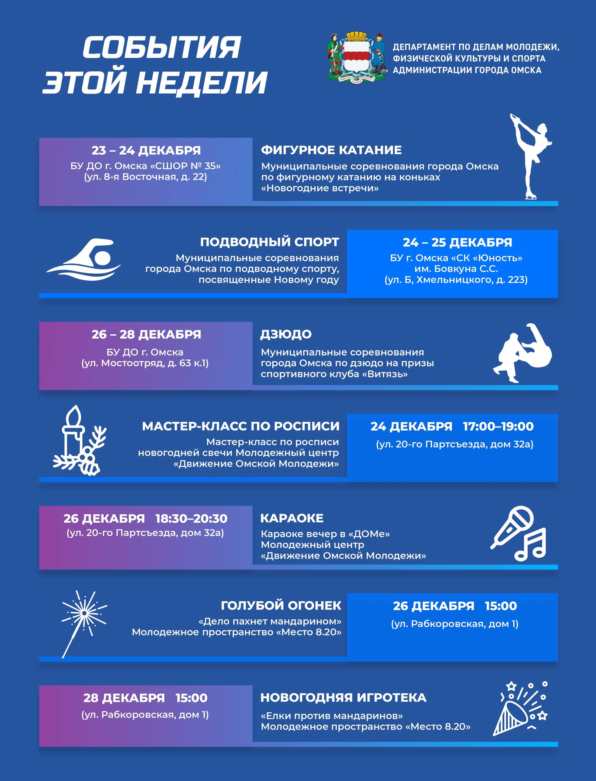 На этой неделе пройдут соревнования по фигурному катанию и подводному спорту, посвященные приближающемуся Новому году.