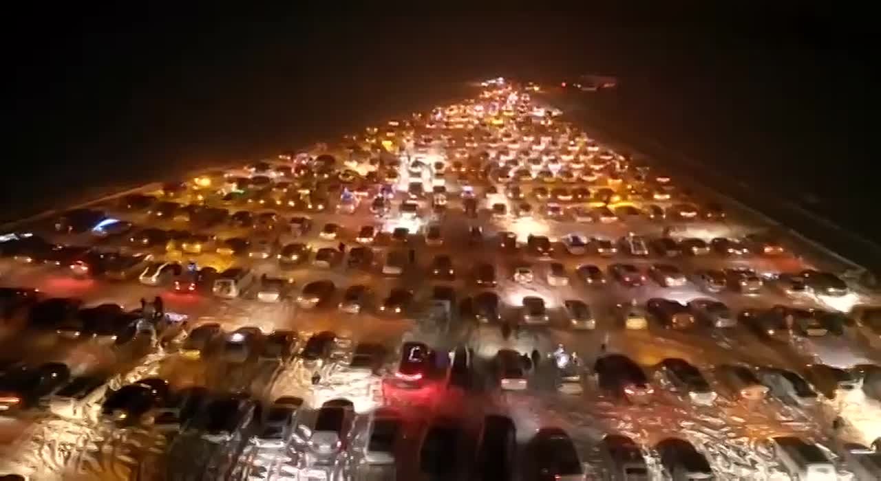 Около 300 автомобилей выстроились в форме новогодней ёлки и включили фары, превратив поле в яркую световую инсталляцию.