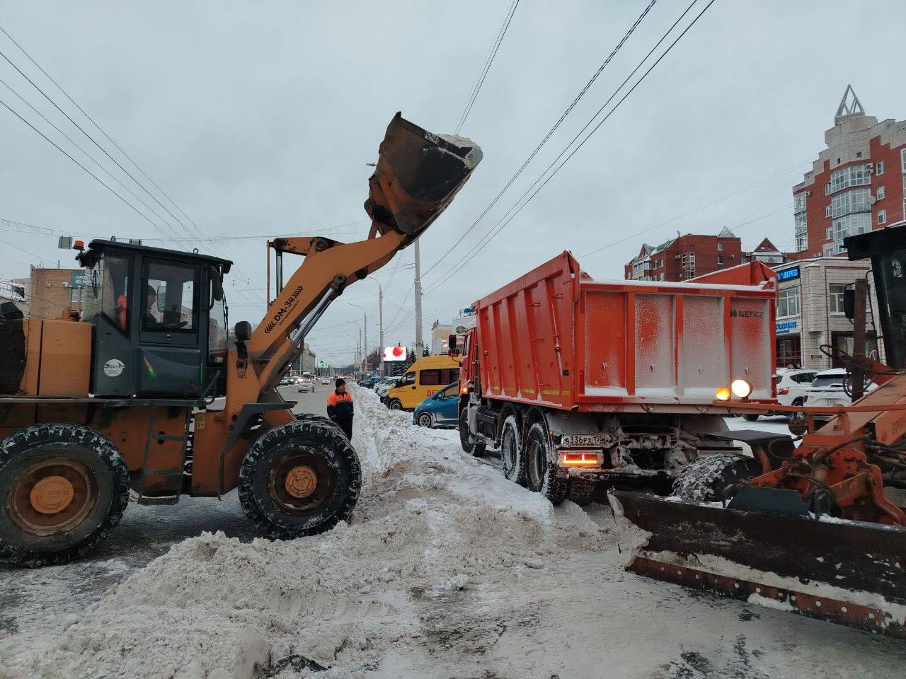 Работы по уборке и вывозу снега продолжаются и сегодня – на улицах города задействованы крупные силы техники и рабочих.
