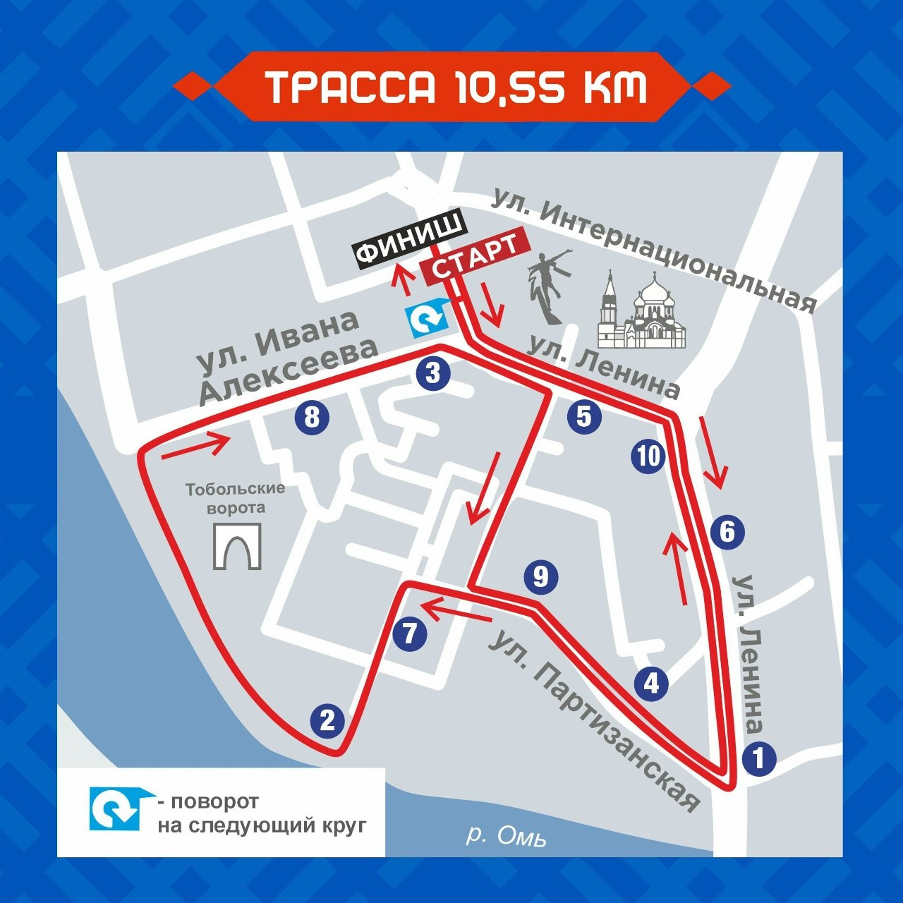 Бегуны, выбравшие дистанцию в 10,5 км, преодолеют 2 круга, а участники полумарафона (21,1 км) — 4 круга.