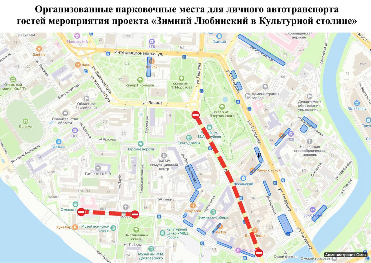 Где припарковать машину на праздниках у Омской крепости и «Зимнего Любинского»