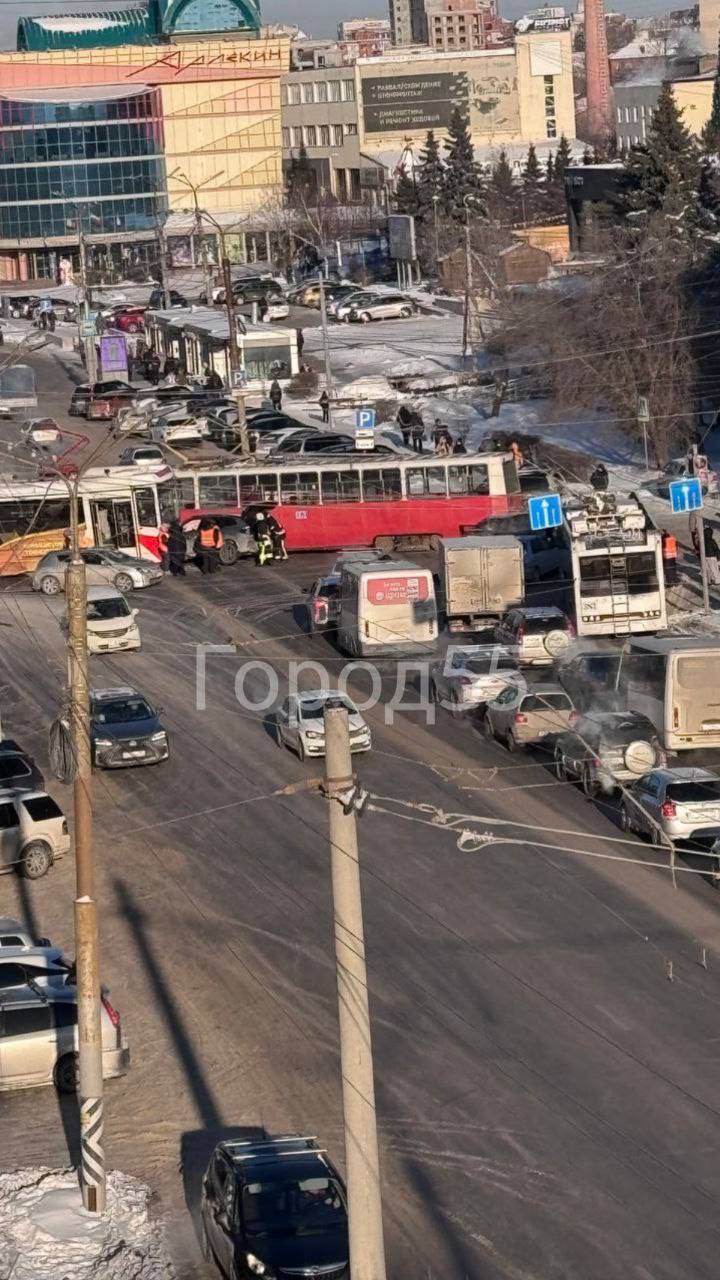 Пробка стоит в обе стороны на несколько остановок.