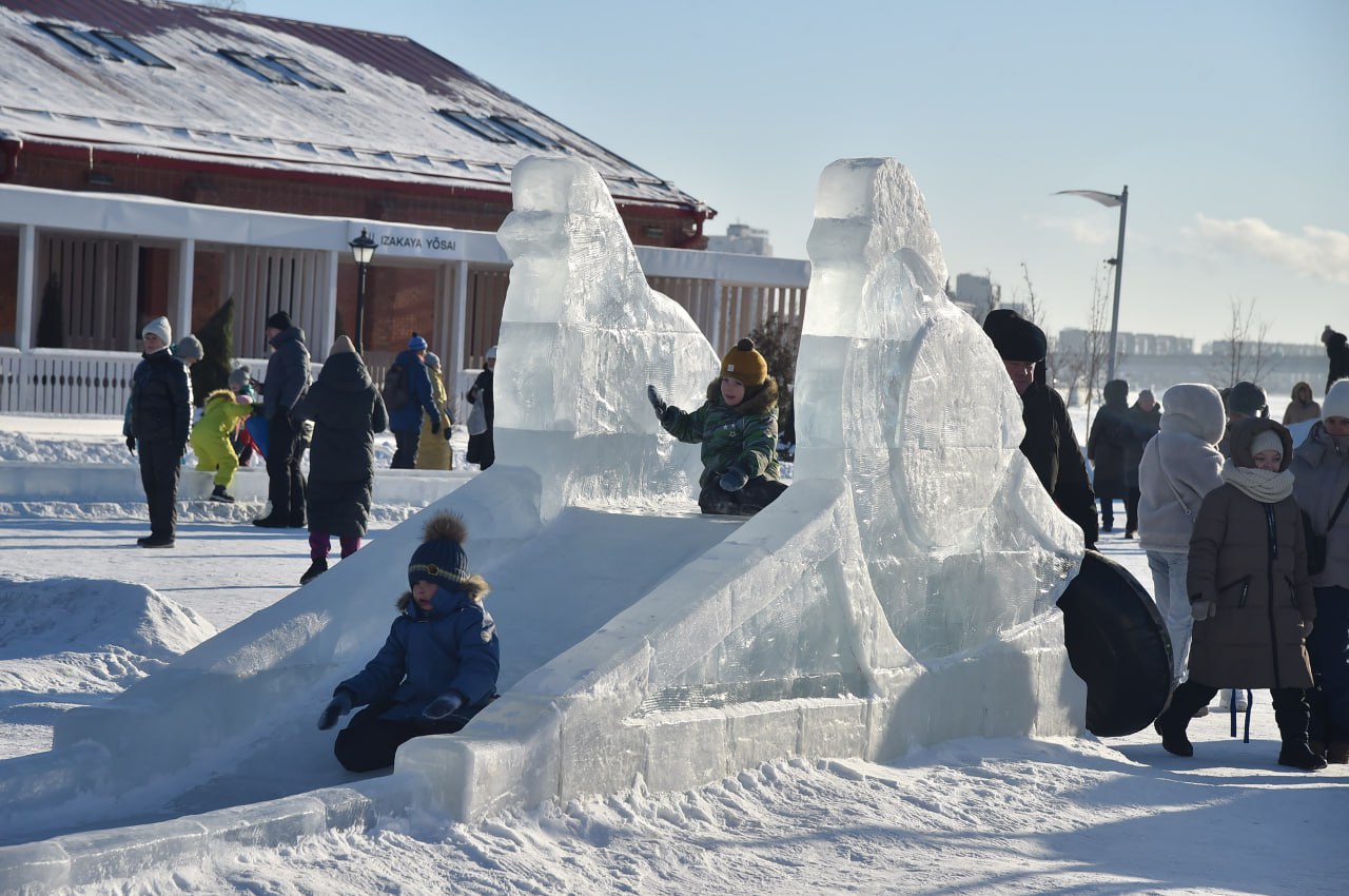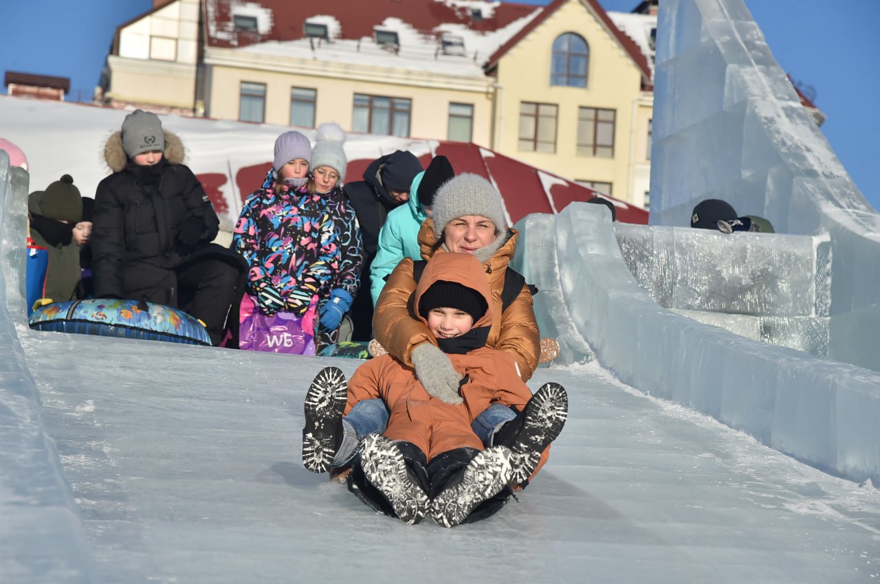 Дети с удовольствием катаются на нескольких ледяных горках и в ледяных чашах. До 17:00 для юных гостей работают интерактивные площадки, развлечения. Также можно покататься на лошадях, пони и олене.