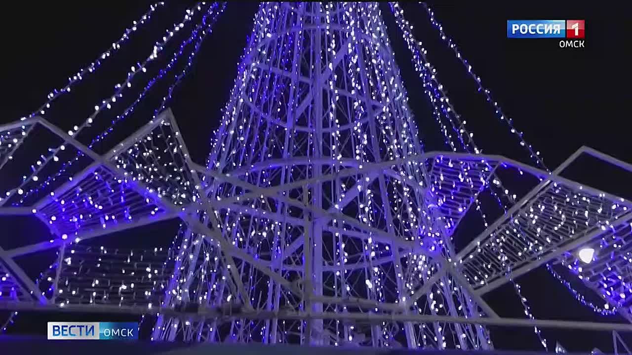 Исторический центр города, прямо на берегу Оми, вновь украшает новогодняя ёлка