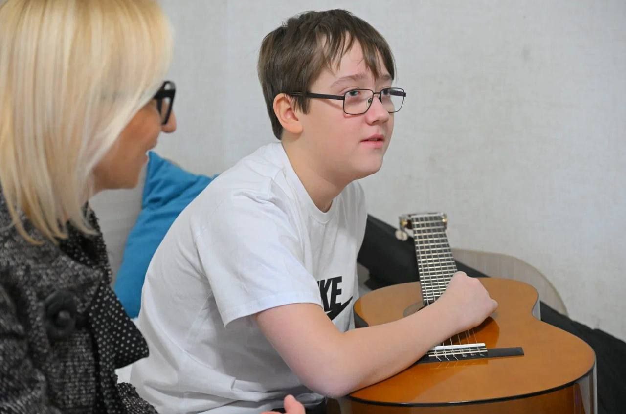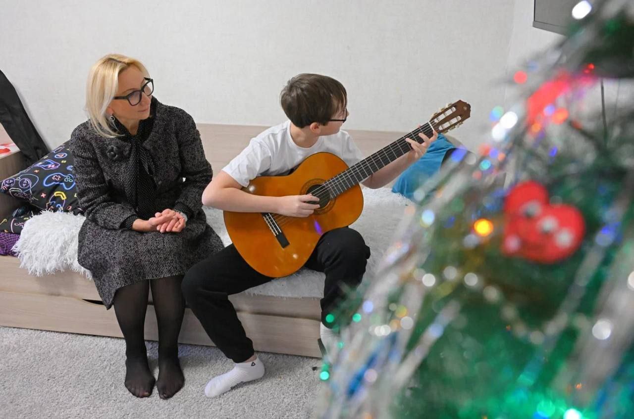 Министр труда и социального развития Омской области Ирина Варнавская поздравила с Новым годом 12-летнего Константина и его маму. Константину 12 лет, он обучается в школе-интернате № 14 для слабовидящих детей, успешно учится, участвует в математических олимпиадах и показывает достойные результаты. В этом году Константин осуществил свою мечту: поступил в детскую музыкальную школу, где учится играть на гитаре.
