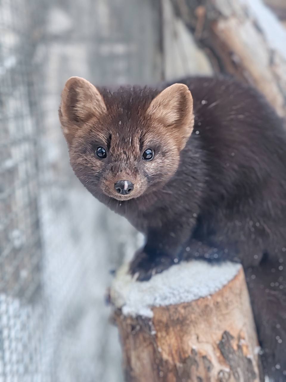 В Большереченском зоопарке показали как соболь Муся выходит на утренний променад