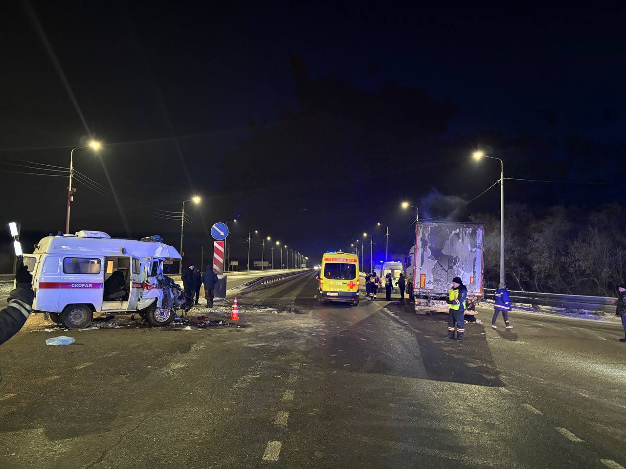 На трассе Тюмень–Омск грузовик не уступил дорогу скорой – пациент погиб, медики госпитализированы