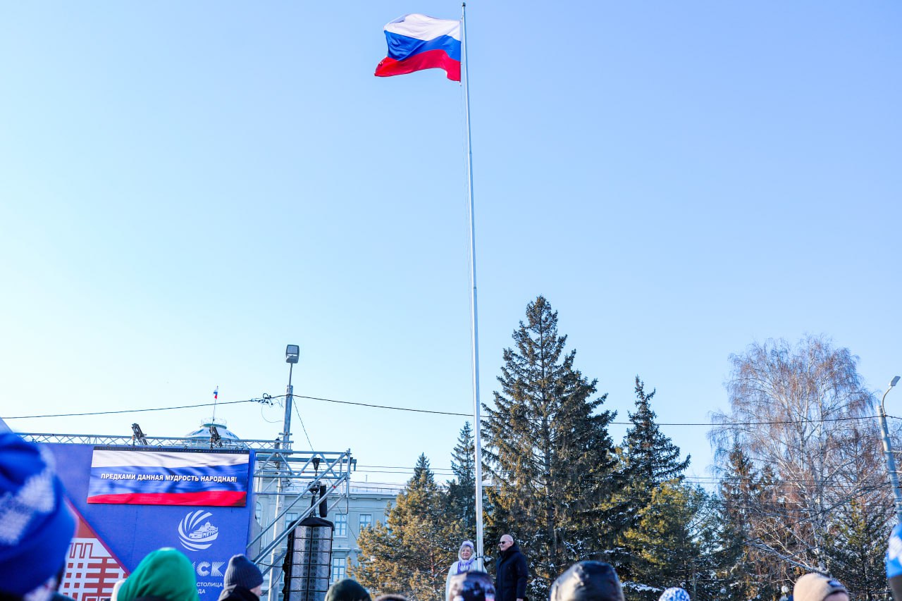 Честь поднять флаг нашей страны в этом году была предоставлена директору Омской филармонии, заслуженному работнику культуры РФ Ирине Борисовне Лапшиной и первому заместителю директора Омского музыкального театра, заслуженному деятелю культуры нашего региона Ивану Федоровичу Шеину.